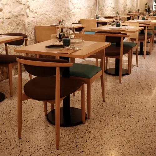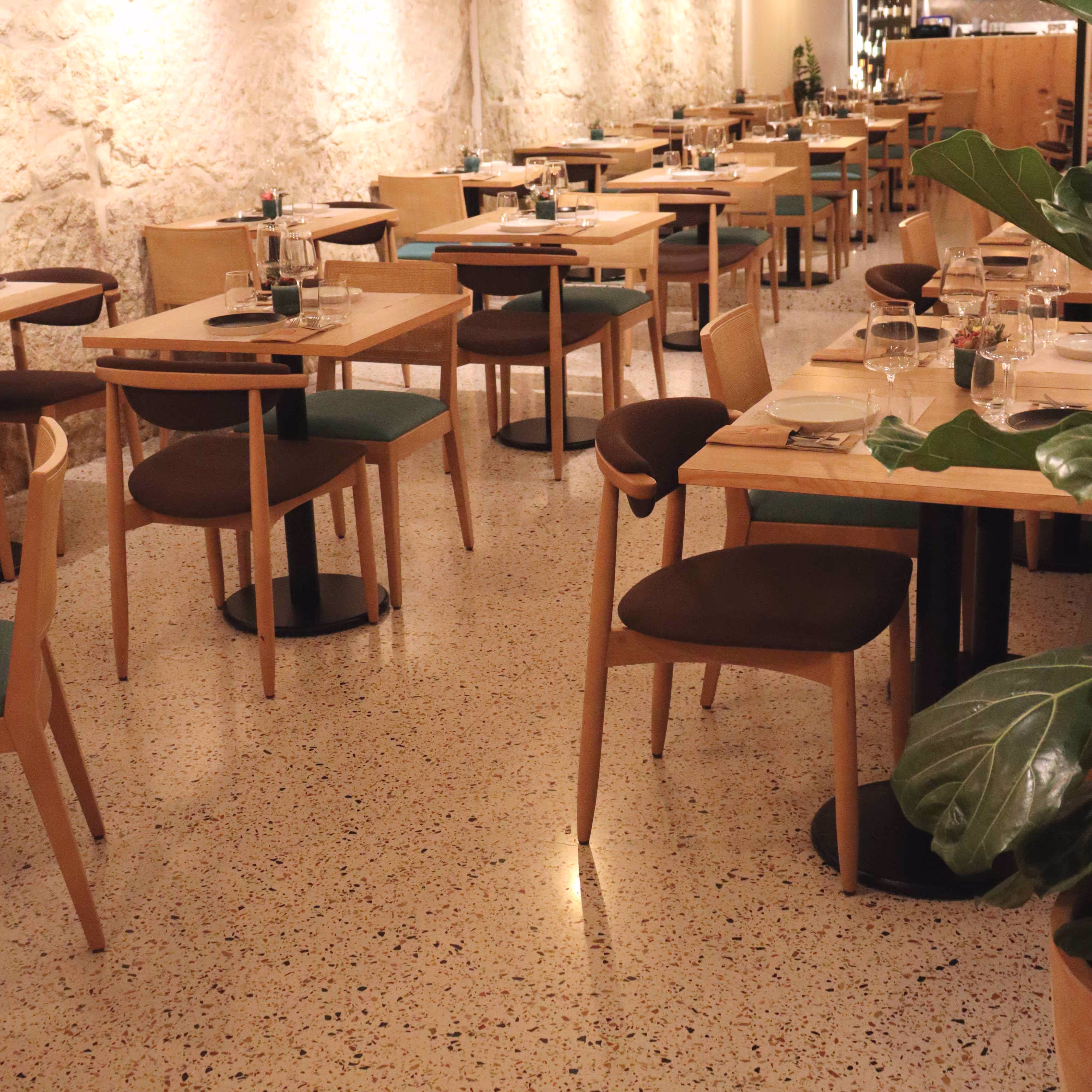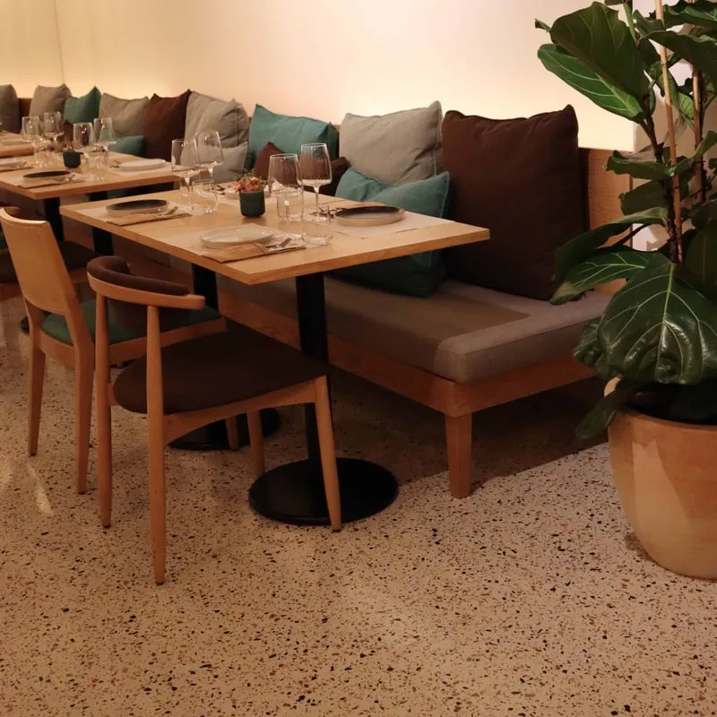 The restaurant Gruta located in the heart of Porto is a project that stands out. Our Merrazzo Africa was used for the entire restaurant floor. The selection of furniture, lighting and texture of the walls combined with our product creates a warm and welcoming environment.